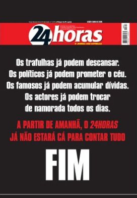 Fim do 24 horas! O Jornal 24horas chegou ao fim! Última edição do 24horas!